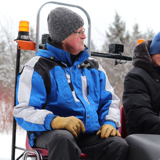 On the last day of 2021, with 32° temperatures and virtually no wind, we felt it was the right time to put a face to the sign names. Some of our younger skiers and visitors cruise past trail names not knowing the legend that is present. Today, two of our skiing legends, coaches Howard Paradis and Mike Pelletier (AKA, Coach), agreed to a photo shoot, hopping aboard the Sherpa to visit their signs. Howard, just having turned 89 this past week, and Mike, 88, both reminisced of state championships and training on the once primitive trails that are now part of Four Seasons. At times the beauty of the trails kept both men quietly admiring the place they coached Madawaska's young skiers so many years ago. Thanks to both for promoting outdoor recreation for Madawaska!